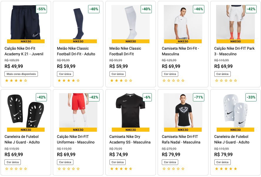 SELEÇÃO Produtos NIKE com até 70 OFF