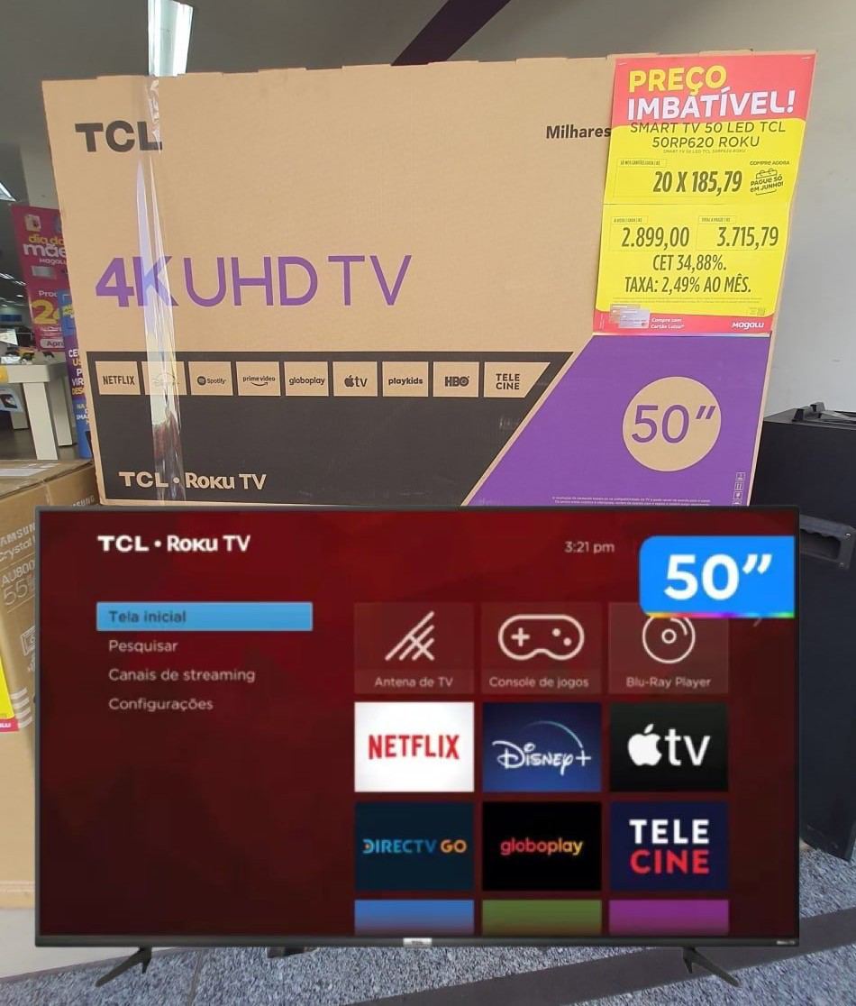 Smart TV 50” 4K LED TCL 50RP620 VA 60Hz – Wi-Fi HDR 4 HDMI 1 USB 1 Porta LAN