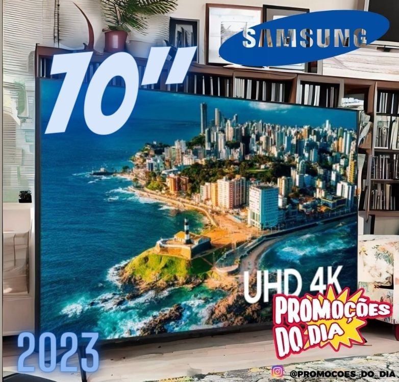 Smart TV 70 Polegadas Samsung UHD 4K, 3 HDMI, 1 USB, Bluetooth, Wi-Fi, Gaming Hub, Tela sem limites, Alexa built in – UN70CU7700GXZD