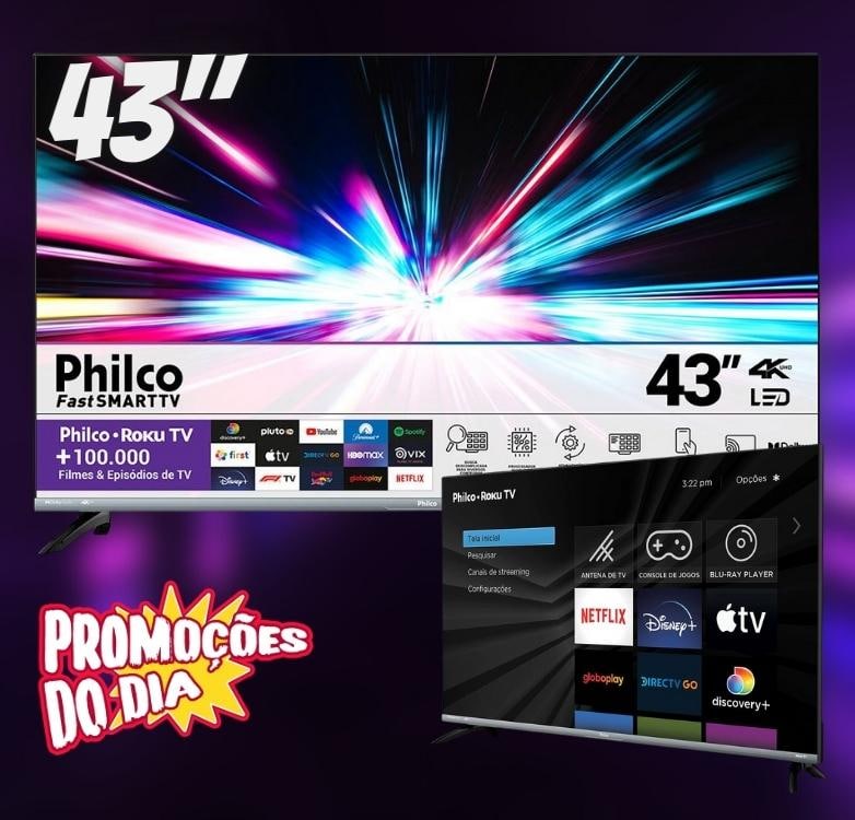 Smart TV LED 43″ 4K Philco Roku TV PTV43G70R2CSGBL HDR10, Dolby Audio, Processador Quad-core