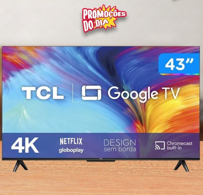 Smart TV LED 43″ 4K TCL 43P635 HDR, Wifi Dual Band, Bluetooth, Controle Remoto com Comando por controle de Voz, Google Assistant e Borda fina