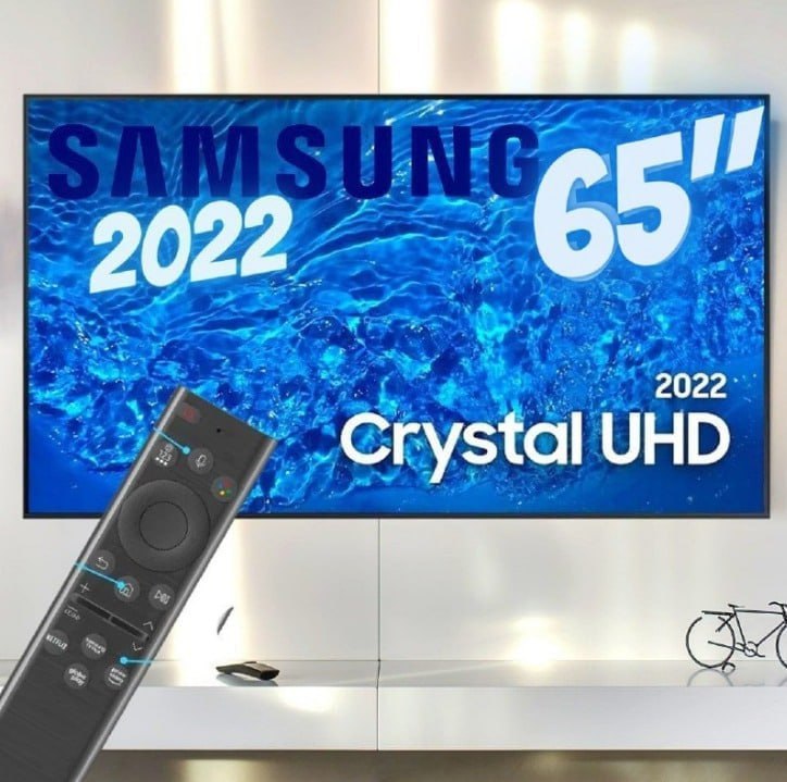 Smart TV Samsung 65 Polegadas Crystal UHD 4K, 3 HDMI, 2 USB, Wi-Fi, Bluetooth, Alexa, Google Assistante, Tela Infinita – UN65BU8000GXZD
