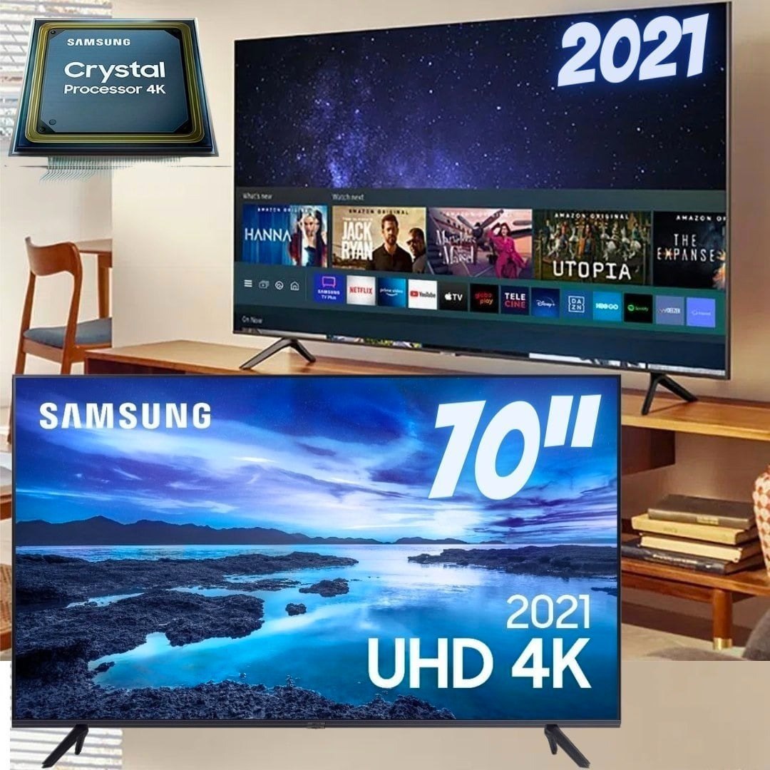 Smart TV Samsung 70″ UHD 4K UN70AU7700GXZD Processador Crystal 4K Tela sem limites Visual