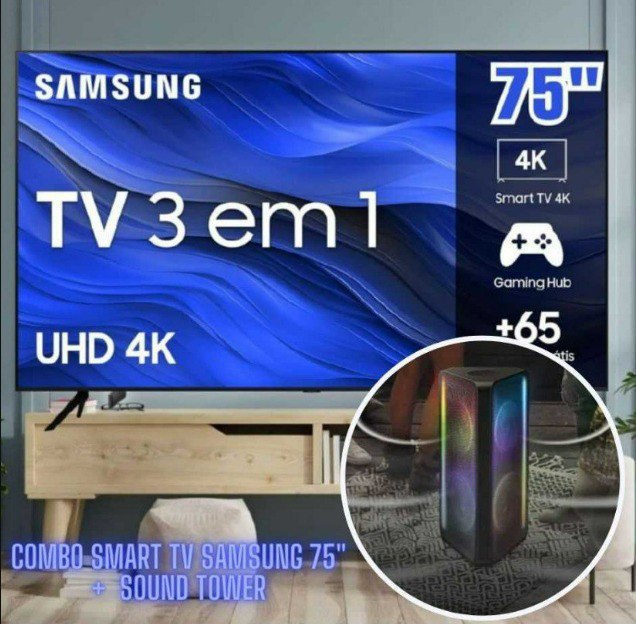 Smart TV Samsung 75″ UHD 4K 75CU7700 + Sound Tower