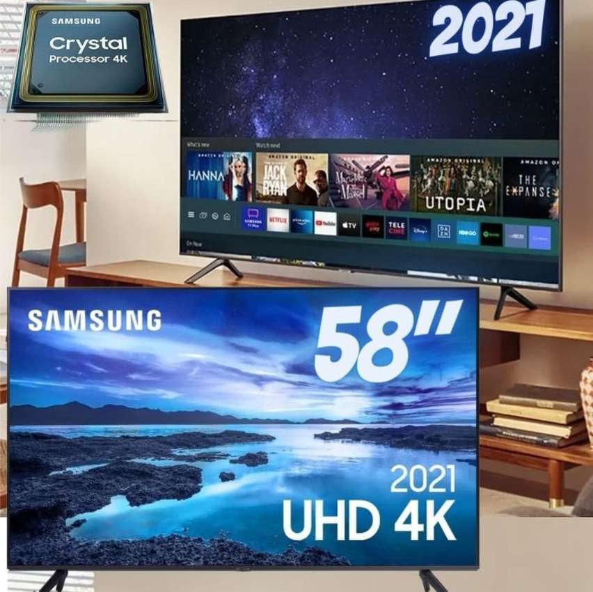 Smart TV Samsung UHD Processador Crystal 4K 58AU7700 Tela sem limites Visual Livre de Cabos 58″