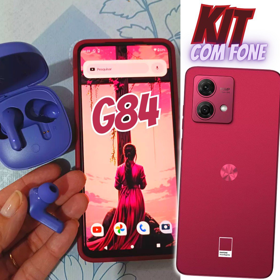 Smartphone Motorola Moto G84 5G 256GB Viva Magenta – Vegan Leather + Fone Moto Buds 135 Lilac