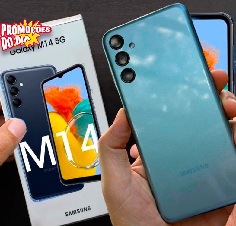 Smartphone Samsung Galaxy M14 5G, 128GB, 4GB RAM, Tela Infinita de 6.6″ Dual Chip