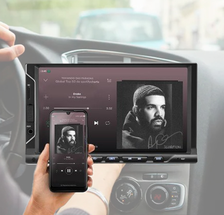 Central Multimídia Multilaser Evolve FIT S Tela 7 Pol Capacitiva 2Din Mp5 Mirror Link iOS Android 4x35W Bluetooth + FM + Cartão SD + USB + AUX – P3340