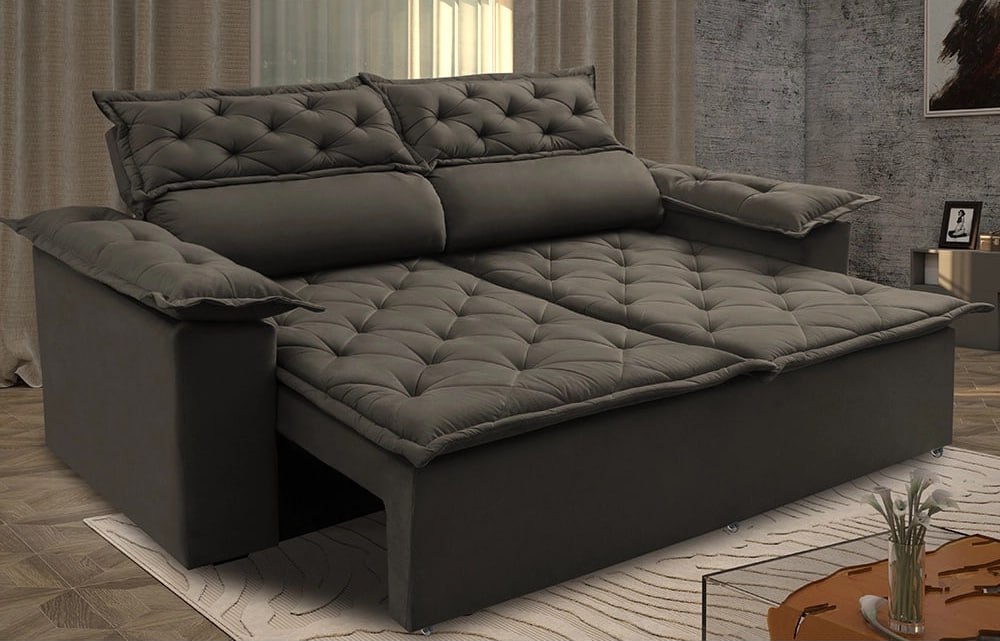 Sofá 3 Lugares Retrátil e Reclinável Cama inBox Compact 1,80m Velusoft Café