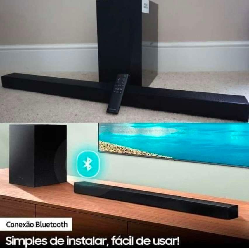 Soundbar Samsung HW-A455 com 2.1 Canais Potência de 300W RMS Bluetooth e Subwoofer sem Fio