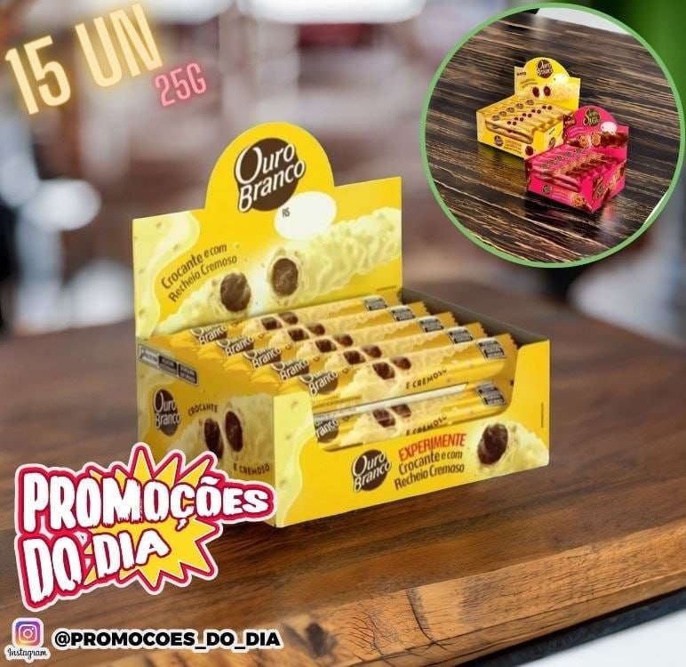 Stick Recheado Ouro Branco display com 15 unidades de 25g