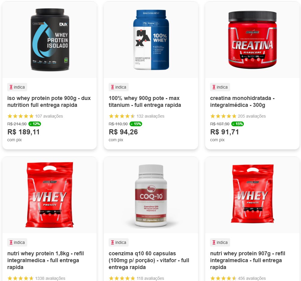 Suplementos com 15% de desconto no pix + 10% do cupom
