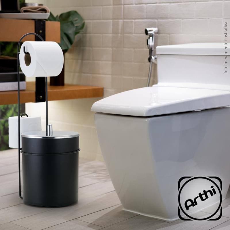 Suporte p/Papel Higiênico/Lixeira com Tampa Inox – Arthi Preto