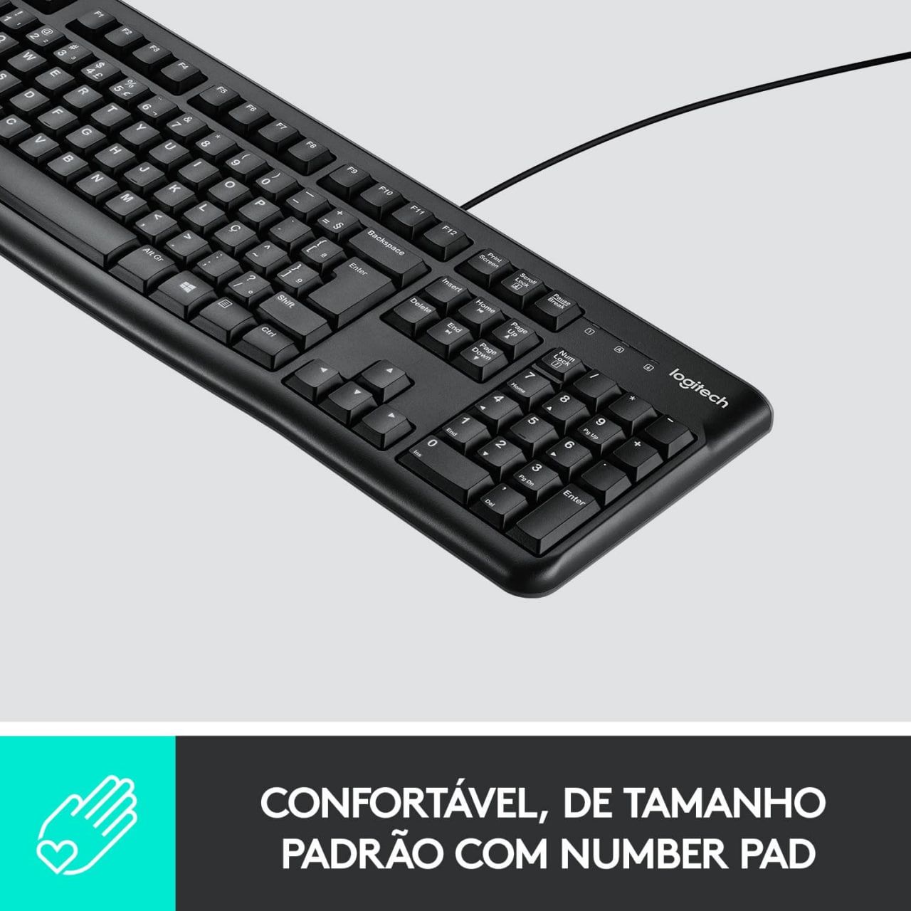 Teclado com fio USB Logitech K120, Resistente à Respingos, Barra de Espaço Curva, Compatível com PC e Notebook, Layout ABNT2
