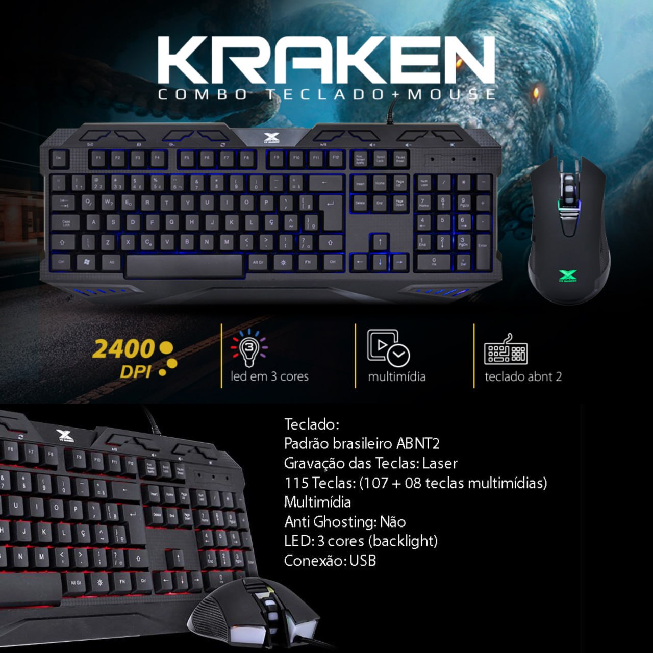 Teclado e mouse gamer Kraken. 🎮🔥 Transforme seu jogo! 🚀