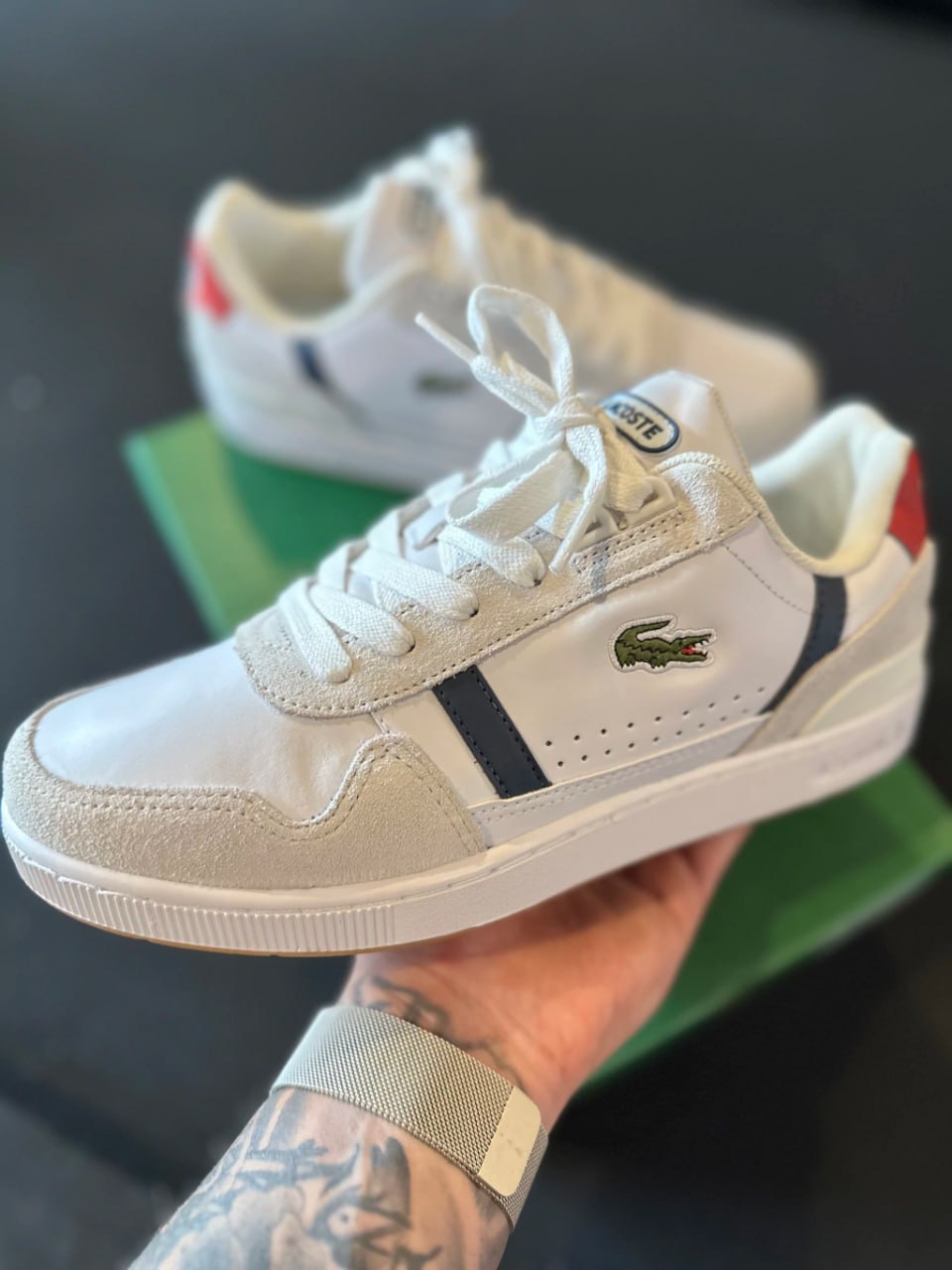 Tênis Lacoste T-Clip Court Sneakers Masculino – Branco+Marinho