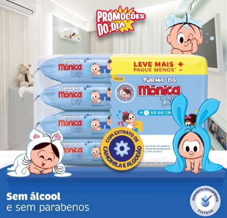 Toalhas Umedecidas Turma da Mônica Baby, Hora da Troca, 176 Unidades Leve Mais Pague Menos, Turma da Mônica Baby, Azul