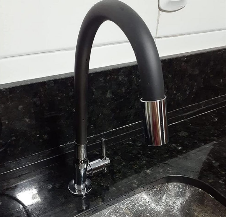 Torneira para Cozinha de Mesa Bica Flexível Gourmet Preta