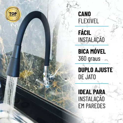 Torneira Preta Flexível Para Parede Gourmet 2 Jatos Cozinha