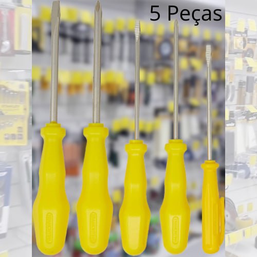 Tramontina 43408176, Jogo de Chaves de Fenda 5 Peças, Sendo 2 Ponta Chata 2 Ponta Cruzada 1 Clipe
