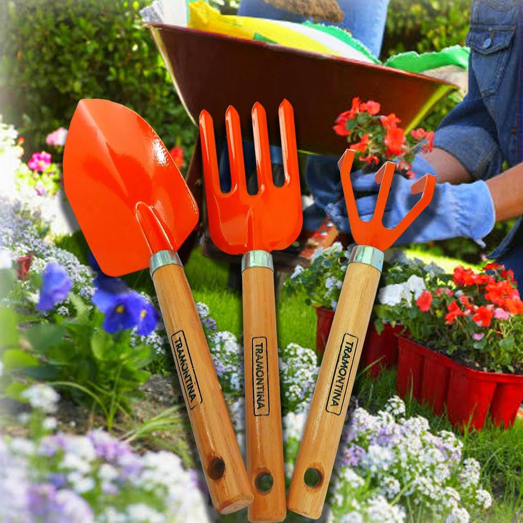 Tramontina Conjunto Para Jardim 3 Peças, Cabos De Madeira, Embalagem Plástica