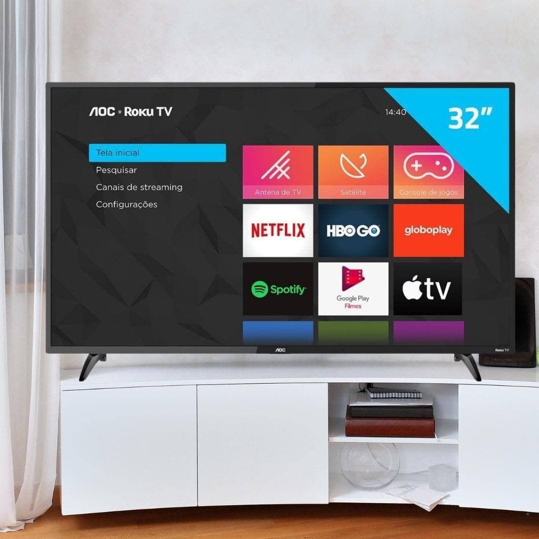 Smart TV AOC Roku LED 32” 32S5195/78 com Wi-fi, Controle Remoto com atalhos, Roku Mobile, Miracast, Entradas HDMI e USB