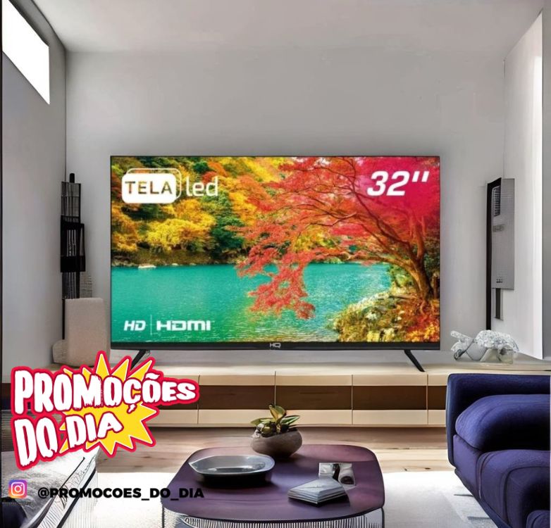 TV LED 32″ HD HQ Conversor Digital Externo 3 HDMI 1 USB Design Slim