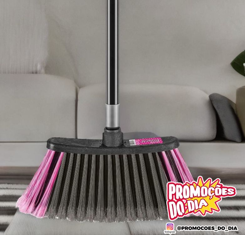 Vassoura Sintética Multiuso, com Cabo, Cor Preta e Rosa, Linha Jeitosa, Bettanin.