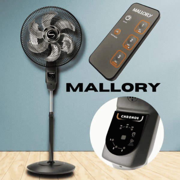 Ventilador de Coluna Mallory Chronos 126W, Silencioso, Com Controle Remoto, Hélice de 6 pás, Auto Desligamento Programável de até 7 Horas- PR – GR – 220V