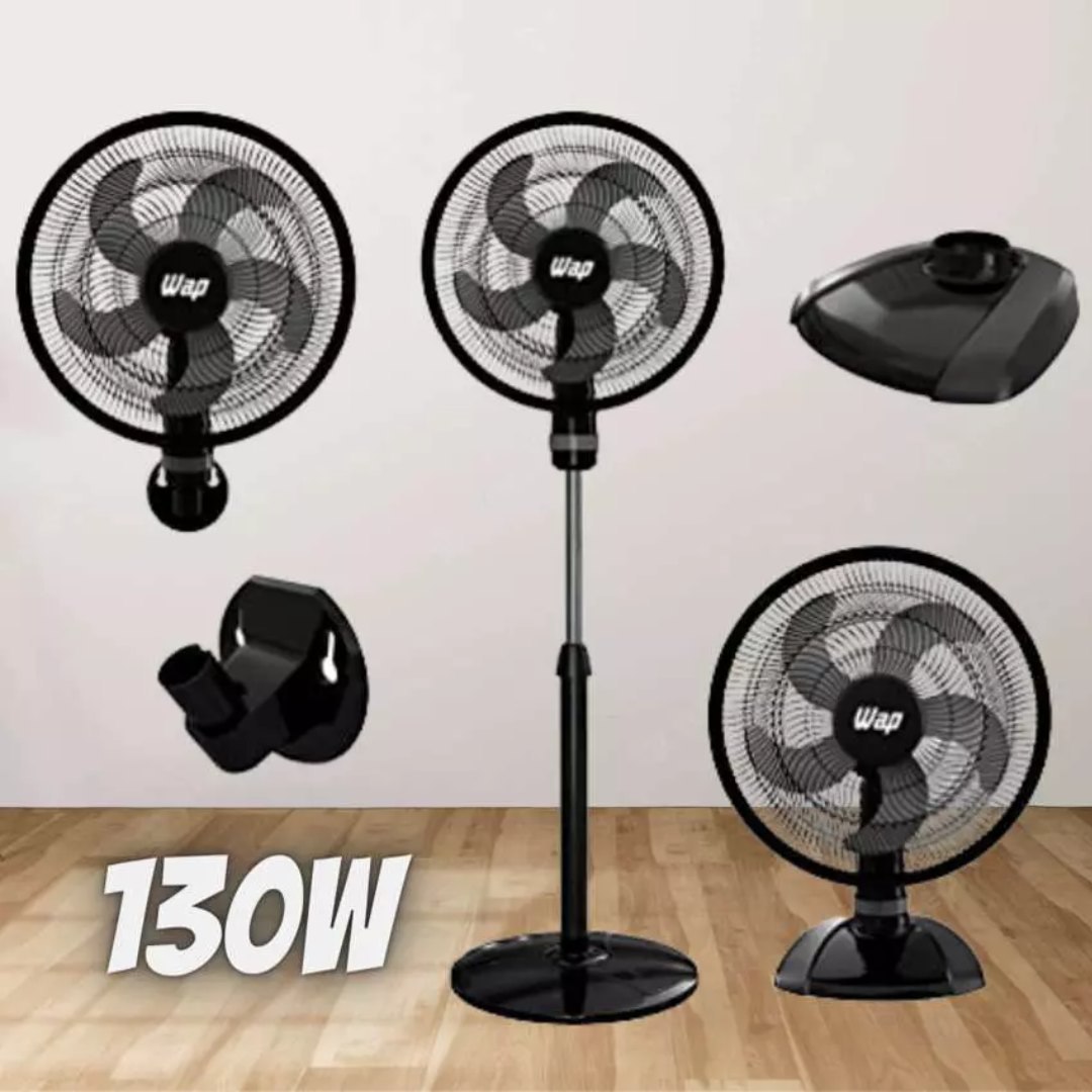 Ventilador de Coluna, Parede e Mesa WAP Rajada TURBO W130 3 EM 1 Preto 130W 50CM 127V