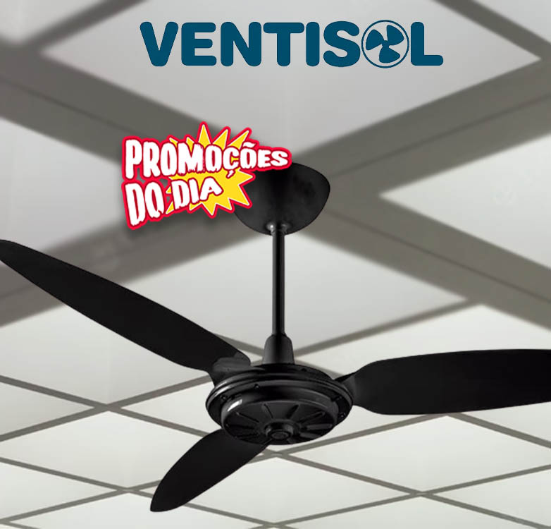 Ventilador de Teto Comercial, Preto, 3 Pás, 220v, Ventisol
