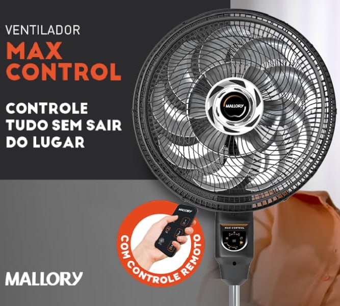 Ventilador Mallory Coluna Max Control com controle remoto -Hélice de 15 Pás