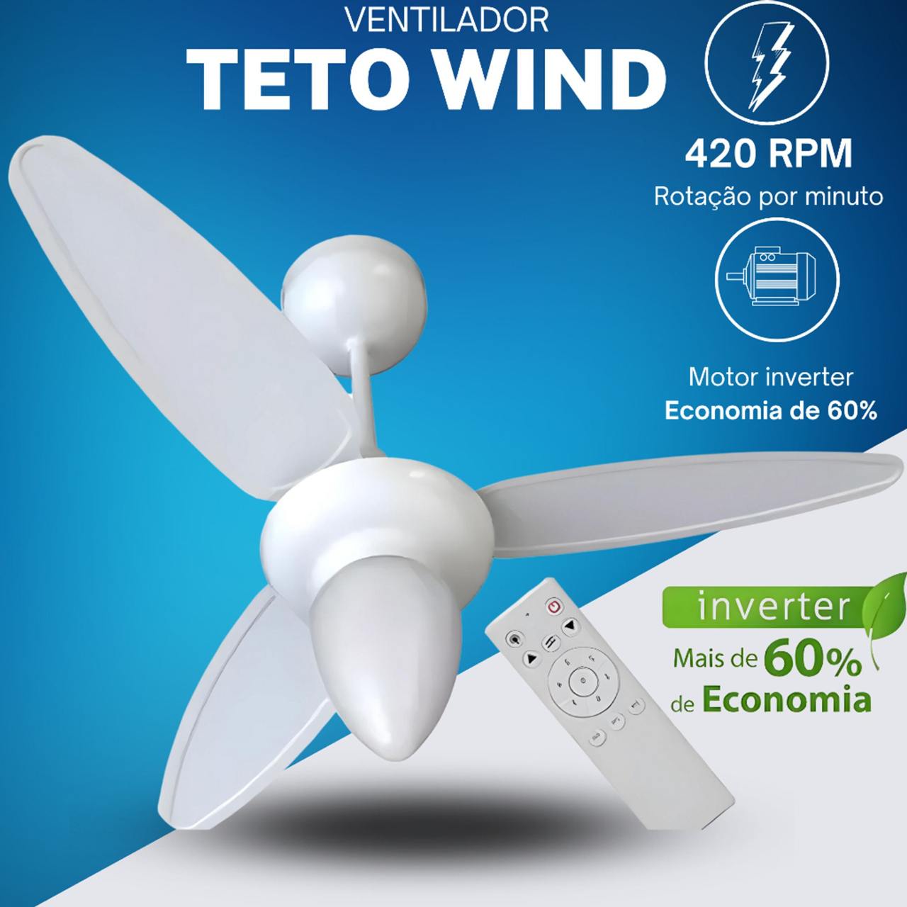 Ventisol Ventilador de teto wind br 3p inj branco c/r inverter bivolt