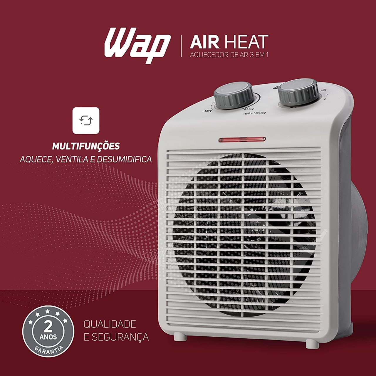 WAP AIR HEAT Aquecedor de Ambientes Elétrico Portátil 3 em 1 Com Ventilação 1500W Triplo Sistema de Segurança 220V