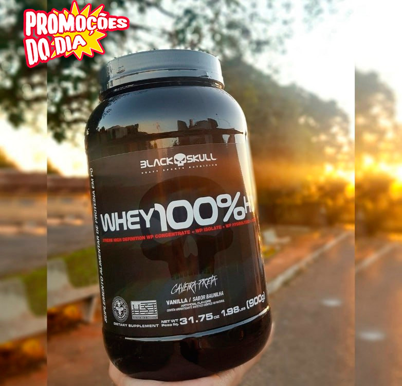 Whey 100% Hd Morango 900G, Black Skull
