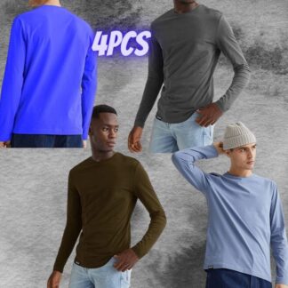 Kit com 4 Camisetas Masculinas Básicas Manga Longa Slim Fitness