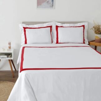 Kit de Capa para Edredom Queen/King com 2 Fronhas 300 Fios Branco e Vermelho – Ziman