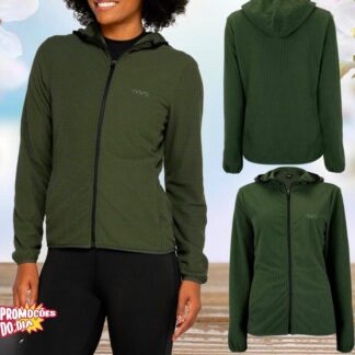 Jaqueta Feminina Nord com Capuz Fleece – verde esc/preto