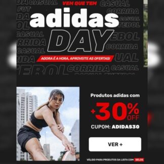 Seleção de produtos Adidas com cupom de 30% de desconto