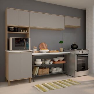 [ENCERRADO] Cozinha Compacta Luciane Vitta com 6 Portas e 1 Prateleira – 251cm de largura – Mel/Fumê