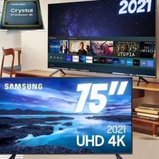 Smart TV Samsung 75″ UHD 4K UN75AU7700GXZD Processador Crystal 4K Tela sem limites Visual Livre de Cabos Alexa built in Controle Único