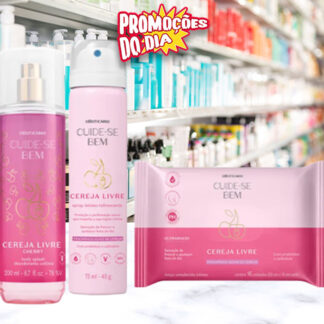 Combo Cuide-se Bem Cereja Livre: Spray Íntimo 75ml + Lenço Umedecido Íntimo + Body Splash 200ml