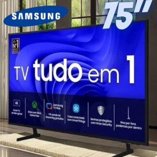 Samsung Smart Big TV 75″ UHD 4K 75DU7700 2024, Processador Crystal 4K, Gaming Hub, AI Energy Mode, Controle SolarCell, Alexa built in
