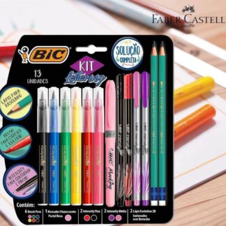 [ENCERRADA]Kit Lettering BIC, c/ 6 Brush Pens + 1 Pincel Marcador Pastel Rosa + 2 Intensity Ponta Fina + 2 Intensiy Ponta Média + 2 Lápis Pretos, 971080, Multicor