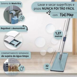 Rodo Flat Mop E Balde Lava E Seca Profissional Com 2 Refil