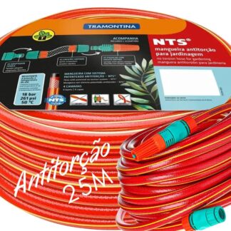 [ENCERRADA] Mangueira Nts Tramontina Antitorção Com Engates Rápidos E Esguicho Em Pvc Laranja 25 M