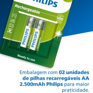 [ENCERRADA] Pilha Philips recarregável AA 1.2V 2.500mAh com 2 unidades R6B2RTU25/59
