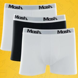 [ENCERRADO] Kit Cueca Mash Boxer Cotton de Algodão 3 Peças – Branco/Preto/Branco